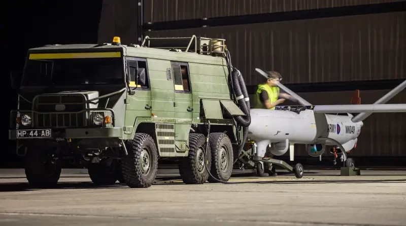 6×6 Pinzgauer используется для буксировки дрона Watchkeeper британской армии на базе ВВС Акротири, Кипр