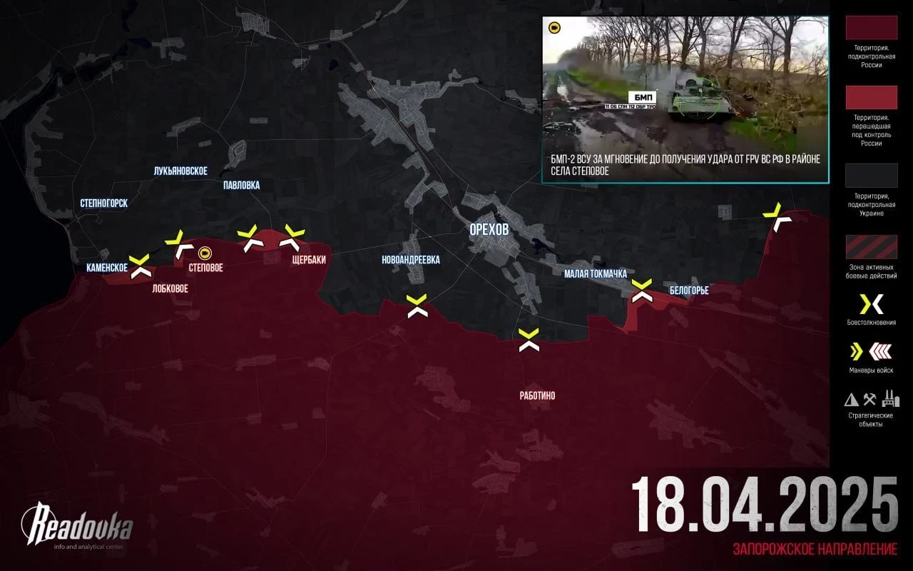 ВС РФ ворвались в Малую Токмачку на Запорожском направлении. Активность ВС РФ на Запорожском направлении в районе села Каменское и восточнее вынудила ВСУ отреагировать. Подразделения ВСУ, сведенные в 2 ударных формирования, начали контратаковать наши позиции в Щербаках и Малых Щербаках. Как и на днях под Покровском, никакого успеха наступательная акция врага не возымела, а вот наши бойцы решили достойно ответить неприятелю, сообщает Telegram-канал Readovka.