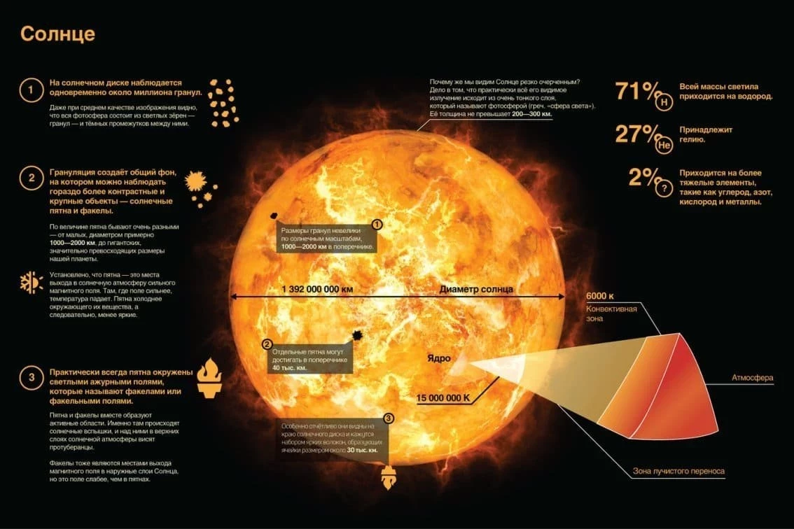 Каким образом устроено Солнце: интересные факты (инфографика)