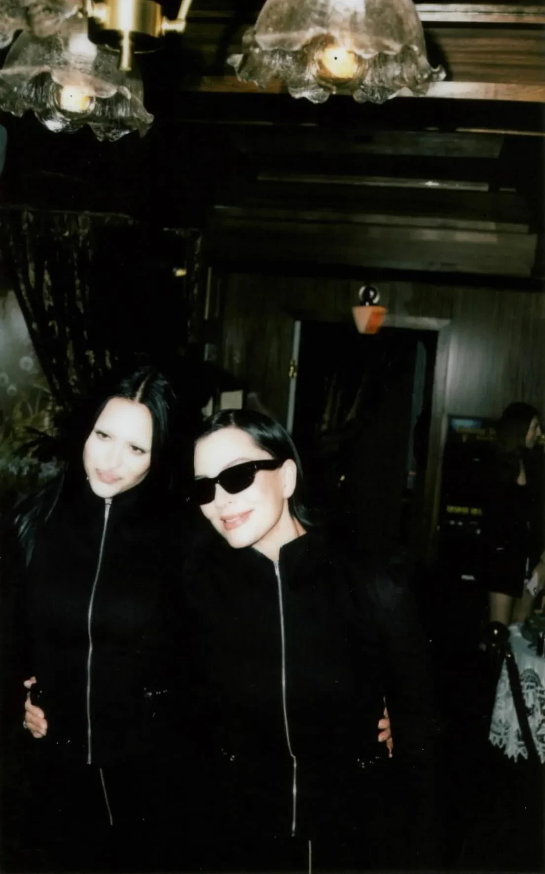 Для вечера Кайли выбрала красный топ и бежевую мини-юбку, а "помолодевшая" после пластики Крис Дженнер позировала в чёрном комплекте и солнцезащитных очках. Хейли Бибер и Кендалл Дженнер появились в нарядах из новой коллекции: Хейли — в платье телесного цвета, а Кендалл — в чёрном облегающем макси с полупрозрачной корсетной вставкой.