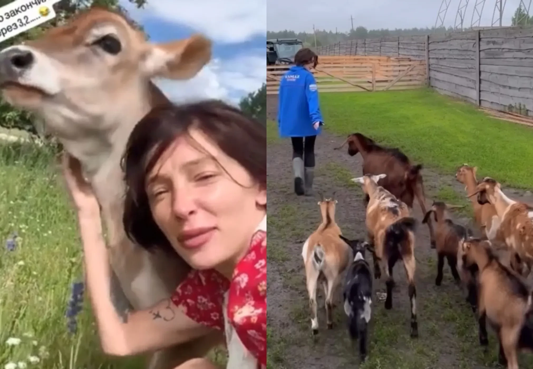 На одном из роликов Настя выводит стадо коз на выпас под песню Антохи МС "Деревня". В другом видео она гладит одну из коз, пока та жмётся к её ноге: "У нас козочки не домашние, но очень ласковые и тактильные", — пояснила блогерша в подписи. Ивлеева также показала подросшего телёнка Юрия, с которым она уже знакомила подписчиков в мае. В телеграм-канале "Героиня Татлера" отреагировали на публикацию, написав: "Насть, ты там не ковчег строишь?". Ивлеева иронично ответила: "Главное — найти вторую тварь".