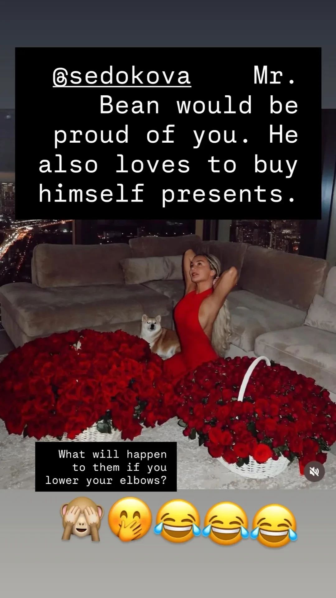 В своём инстаграме* Райтис Тимма ответил на пост Седоковой с фото двух корзин роз, которые ей подарили. 42-летняя певица не раскрыла, от кого новые цветы, хотя в сети стали предполагать, что у неё появился новый поклонник. Райтис написал: "Анна Седокова, мистер Бин гордился бы тобой. Он тоже любил сам себе покупать подарки". Таким образом, он намекнул, что Седокова сделала постановочное фото, чтобы привлечь к себе внимание.